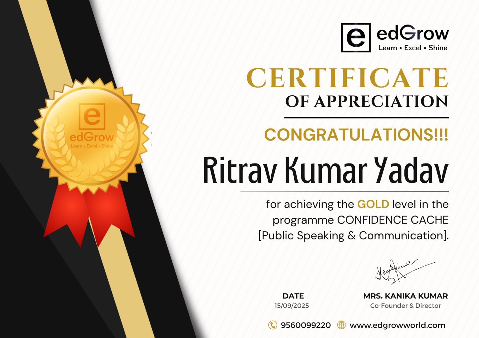 Shivam was too shy before he joined EDGROW!! Surprisingly his communication skills, confidence & attitude have improved so much that his class teacher now makes him participate in almost all activities.